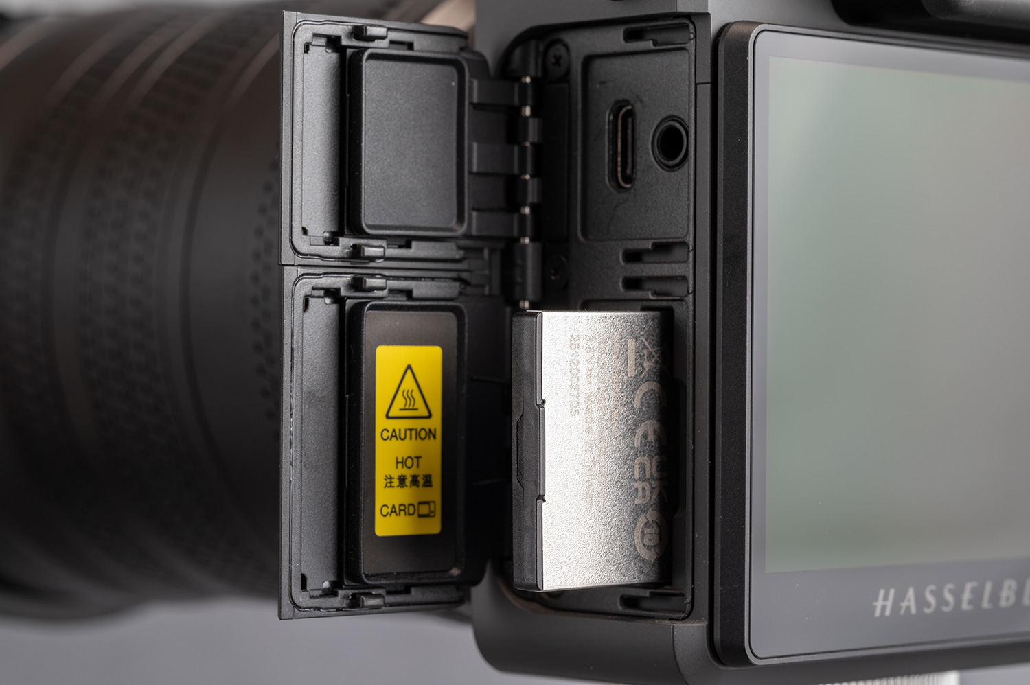 記録メディアはCFexpressのType-Bですが、X2D 100Cと同じくボディ内に1TBの超大容量SSDを搭載していますのでカードを使わない運用も現実的です。もちろん、内蔵SSDにRAWを、CFexpressカードにHEIFやJPEGを書き分ける運用も可能です。