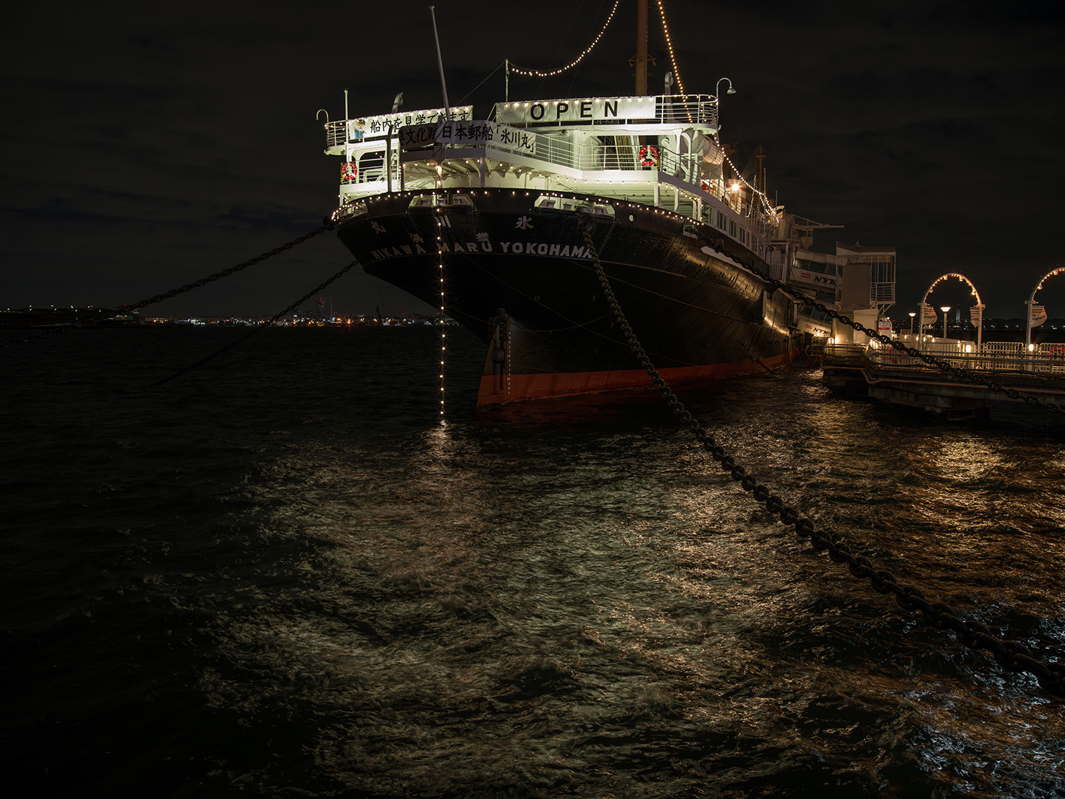 船は揺れているのであまりスローだと動体ブレしてしまう。何度か試し撮りを行い、船が止まり、なおかつ水面に表情が出るシャッター速度0.3秒で撮影しました。
