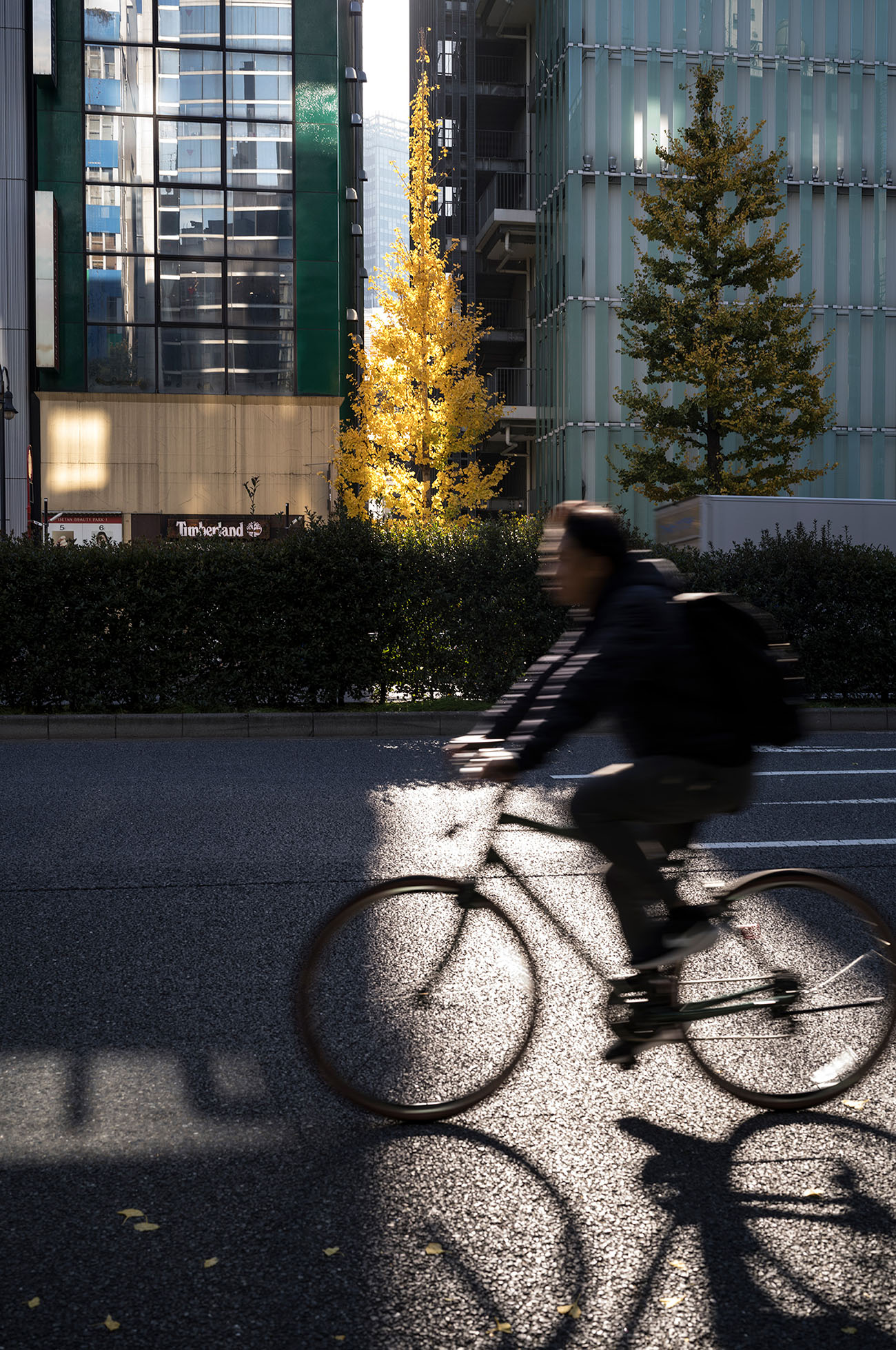 動きのあるものにピントを即座に合わせるにはM型はEVFといえども難しいと感じる。しっかりと銀杏にピントを合わせていると、タイミング良く自転車が通過。ナイス!