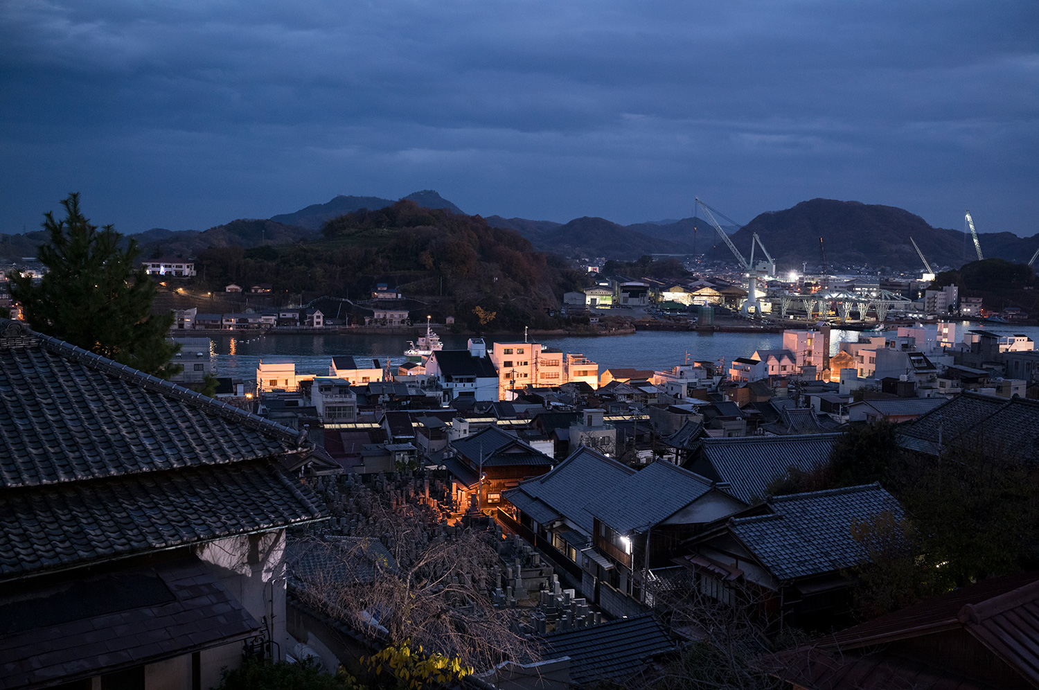 暮れなずむ瀬戸内海を眺めながら、かつて村上水軍が行き来した頃などに思いを馳せる。感動と感謝の旅の締めくくりのブルーアワーを、ライカM EV1はしっかりキャッチ。