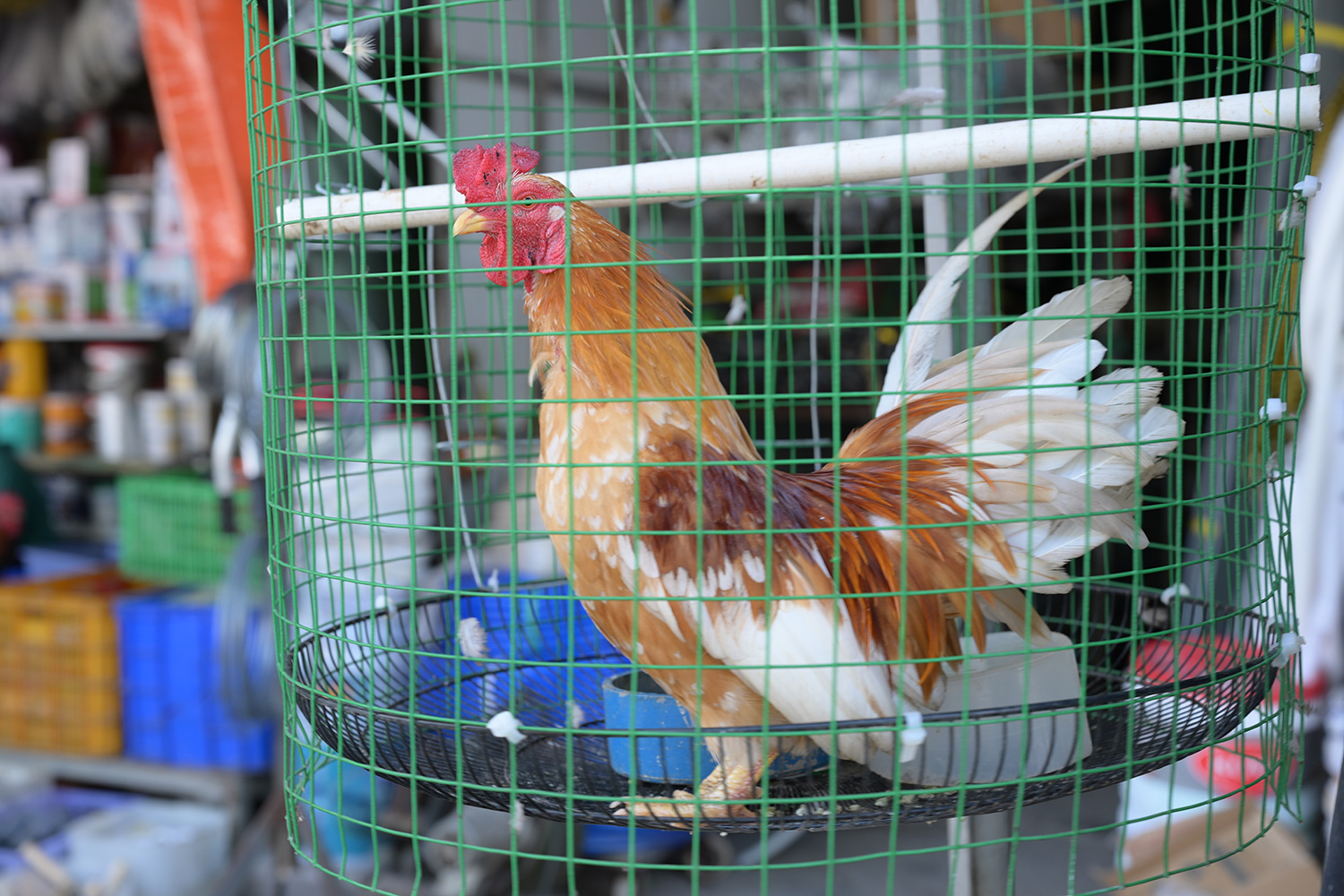 ZRを購入してちょうど1ヵ月経った頃にベトナムに行った。ZRの操作には慣れてきたがファインダーなしの撮影はなかなか慣れない。鳥かごがブラブラ揺れるのでピントが合うかシャープに撮れるか心配したけど、ZRのAFはちゃんと鶏を検出してくれた。鶏の目には鳥かごの格子が被っているけどピントは目に合っている。さすが!