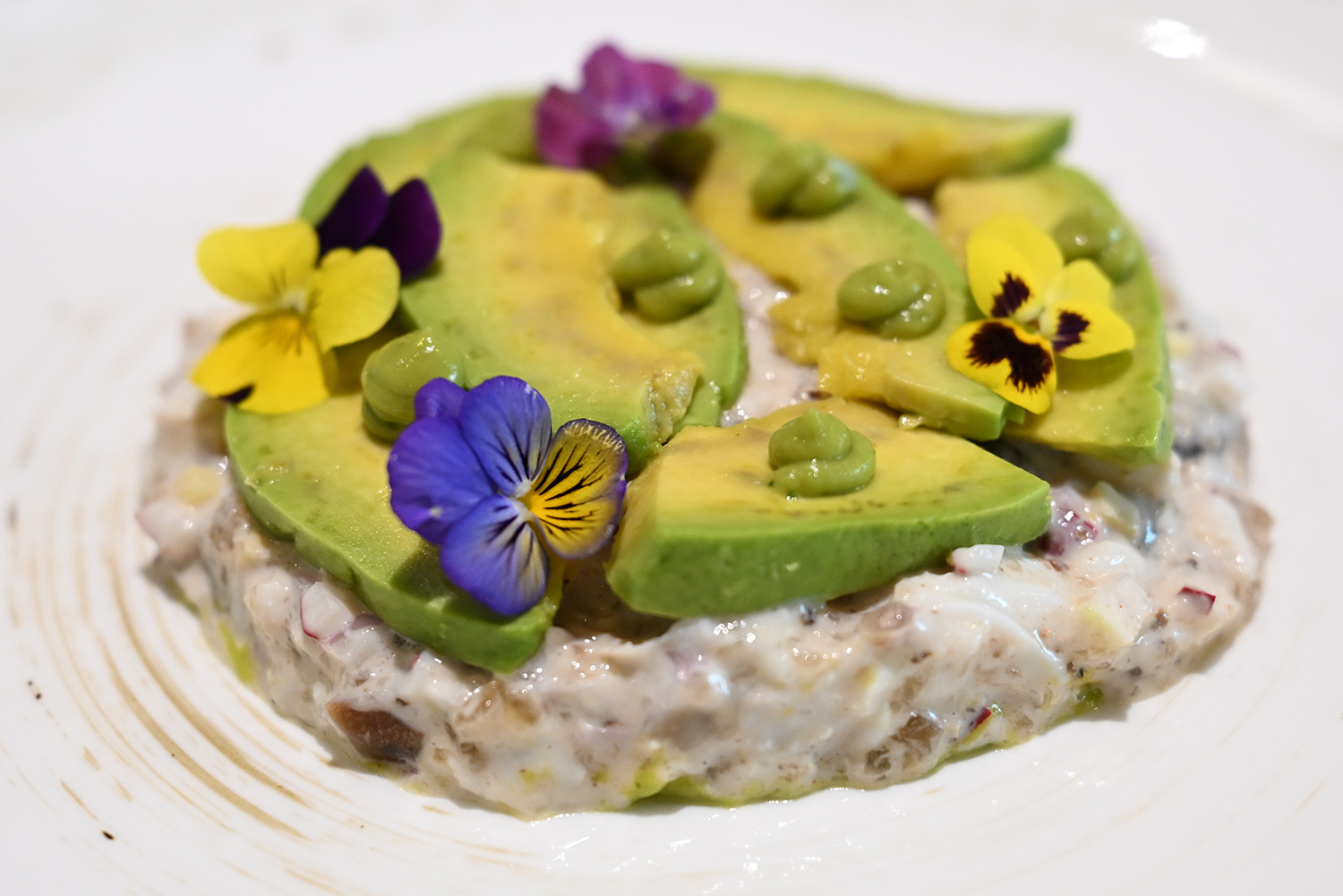 フランス統治の名残だろうか、ホーチミンには本格的なフランス料理店が多い。写真はアベがよく行く48 BISTROの前菜。蟹肉と生牡蠣をミックスしてその上にアボガドのスライスをのせている。Z 24-70mm f/2.8 S IIは最短撮影距離が短い。写真は70mm時で0.33mまで近寄れる。