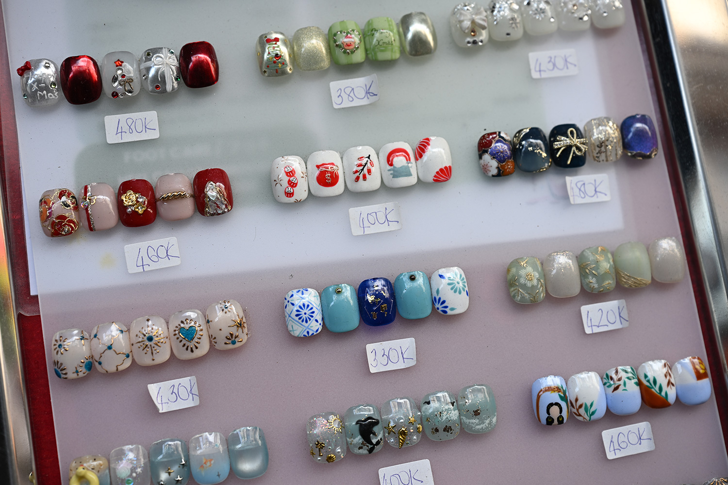 もう1点クローズアップ。写真は約50mm時で最短撮影距離は約0.3m。ネイルサロンの見本。画面の均一性はとても高く隅々までしっかり再現されている。これだけ描写がしっかりしていると、安心して使える。