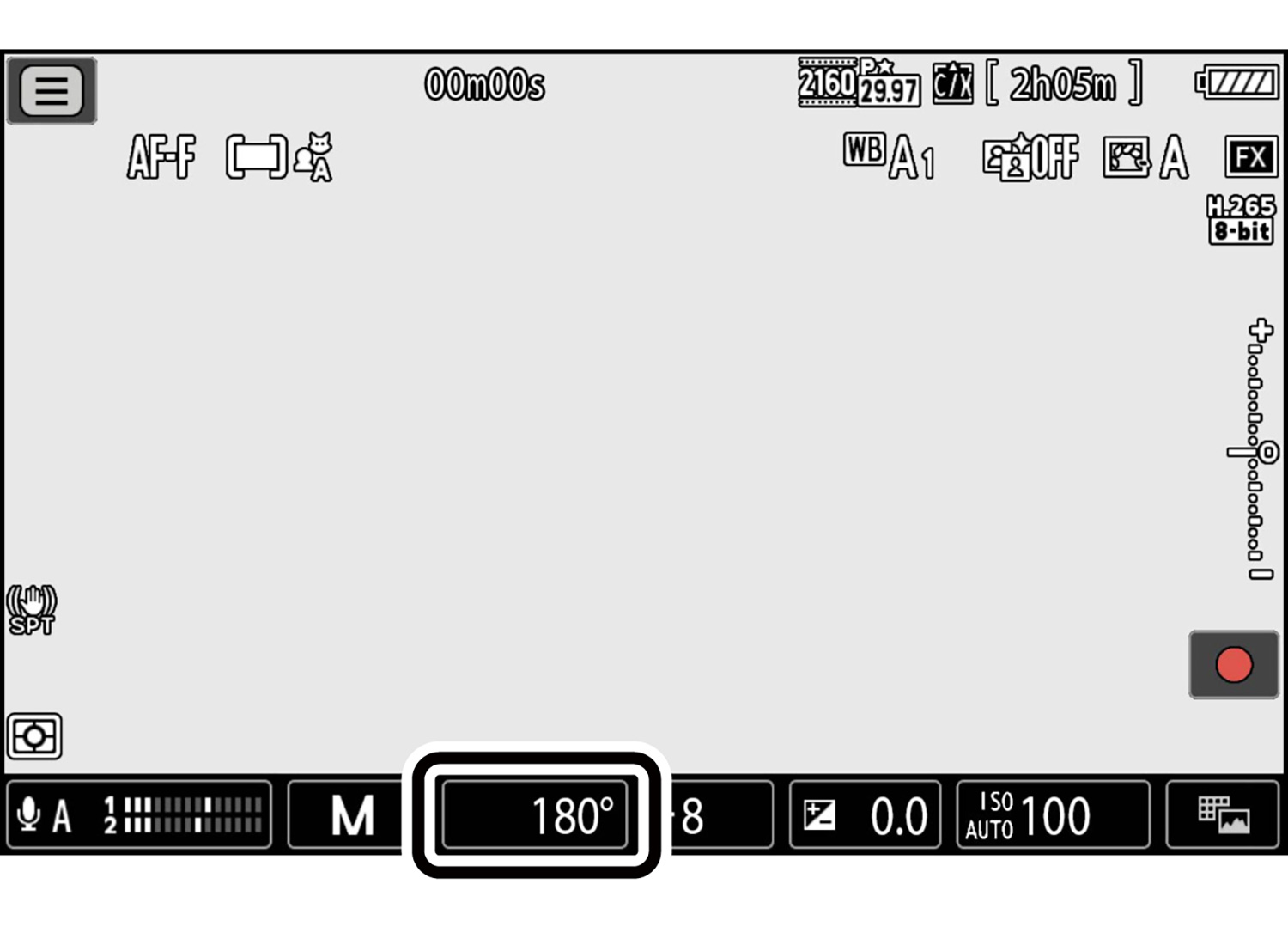 動画モード時、シャッターアングルも180°に設定すると、180°再生時。カクカクしたりせずに自然な見え方になる。